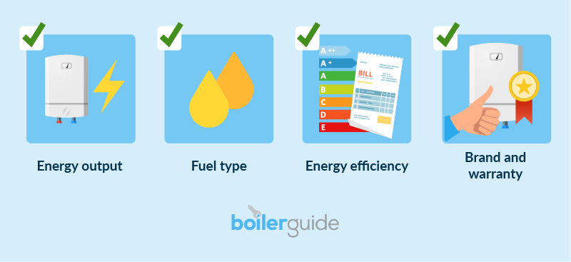 There are a couple of things you should keep in mind while choosing a new combi boiler, such as energy efficiency, output size, fuel type, brand and warranty. This section will cover these points in detail:
